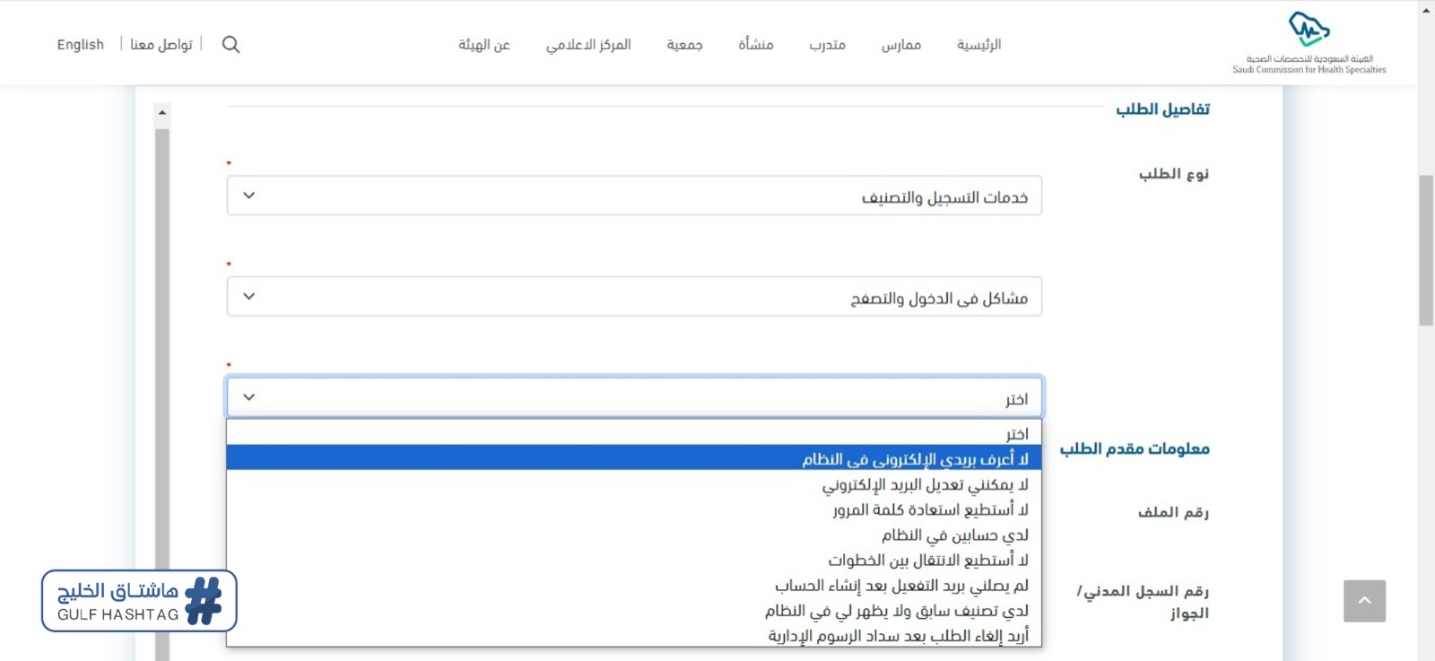 - نوع الطلب الرئيسي: خدمات التسجيل والتصنيف.