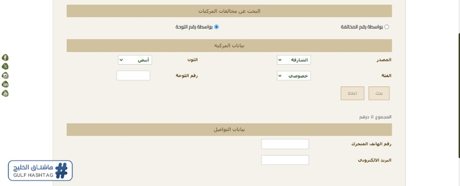 - تحديد البحث عن المخالفة المرورية ببيانات اللوحة.